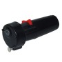 Motore per spiedo/girarrosto ad attacco universale fino a 6,5 mm. Movimento reversibile nei due sensi. Testata del motore e guida spiedo in metallo solidi e insensibili al calore. Alimentazione tramite batteria modello torcia (NON INCLUSA) da 1,5V. Dimensioni: 5,5 x 13 cm circa.