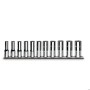 Serie di 11 chiavi a bussola a mano lunghe bocca poligonale attacco quadro femmina 1/2" (art. 920BL) su supporto.