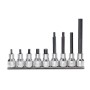 Serie di 9 chiavi a bussola maschio esagonale attacco quadro femmina 1/2" (art. 920PE) su supporto.