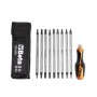 Assortimento di 9 giravite bivalenti e 1 impugnatura di manovra, in astuccio.